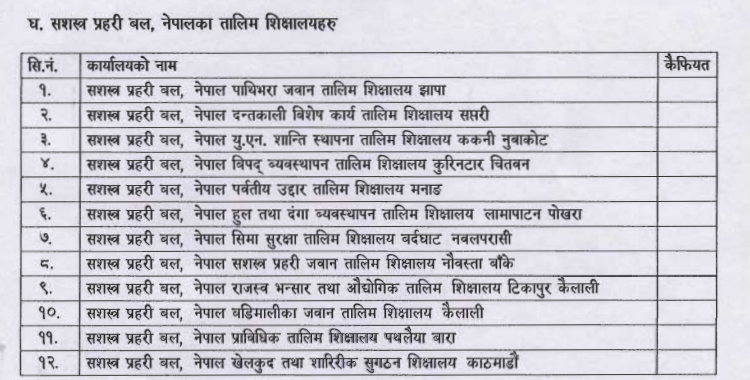 काठमाडौं । सशस्त्र प्रहरी बलको १२ वटा तालिम शिक्षालयमध्ये चितवनको कुरिनटारस्थित विपद् व्यवस्थापन तालिम शिक्षालय उत्कृष्ट बन्दा मनाङस्थित पर्वतीय उद्धार तालिम शिक्षालय भने उत्तम श्रेणीभित्रै पर्न असफल भएको पाइएको छ ।