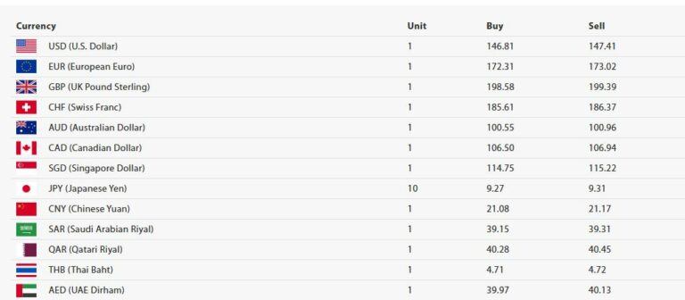 काठमाडौं । नेपाल राष्ट्र बैंकले आज (शनिबार) का लागि विदेशी मुद्राको विनिमय दर निर्धारण गरेको छ । जसअनुसार अमेरिकन डलरको मूल्य हालसम्मकै उच्च बिन्दुमा पुगेको छ । शुक्रबार खरिददर १४६ रुपैयाँ ३२ पैसा र बिक्रीदर १४६ रुपैयाँ ९२ पैसा कायम भएको अमेरिकी डलर एकको खरिददर आज १४६ रुपैयाँ ८१ पैसा र बिक्रीदर १४७ रुपैयाँ ४१ पैसा तोकिएको छ ।