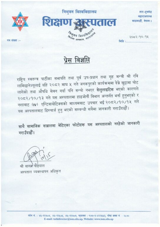 अस्पतालबाट डिस्चार्ज भए रवि लामिछाने