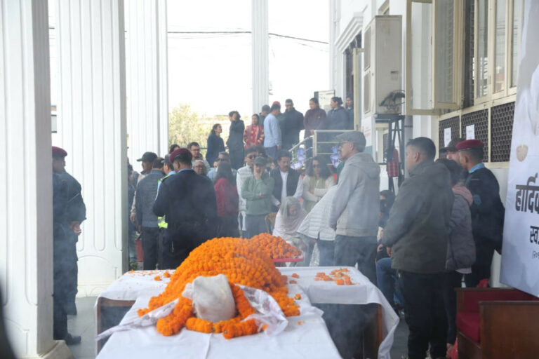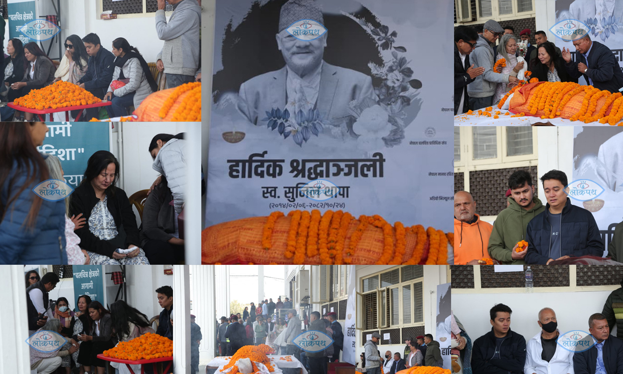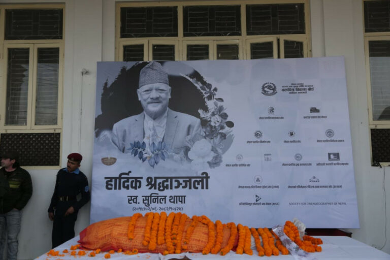 काठमाडौं । नेपाली चलचित्र जगतका वरिष्ठ तथा लोकप्रिय अभिनेता सुनिल थापाको पार्थिव शरीर अन्तिम श्रद्धाञ्जलीका चलचित्र विकास बोर्ड परिसरमा राखिएको छ ।