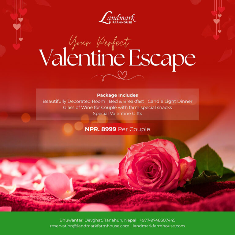 ल्याण्डमार्क ग्रुपले आफ्नो स्वामित्वमा रहेको ल्याण्डमार्क फार्म हाउस देवघाटमा समेत भ्यालेन्टायन्स स्पेसल अफर सार्वजनिक गरेको छ । तनहुँको भुवनटार, देवघाटमा रहेको ल्याण्डमार्क फार्म हाउसमा ८ हजार ९९९ रुपैयाँमा एक जोडीका लागि भ्यालेन्टाइन डेकोरेसन सहितको रुम, एक बोतल वाइनसहित स्न्याक्स र क्याण्डललाइट डिनर, भ्यालेन्टाइन गिफ्ट र भोलिपल्ट बिहान ब्रेकफास्टको व्यवस्था गरेको छ ।