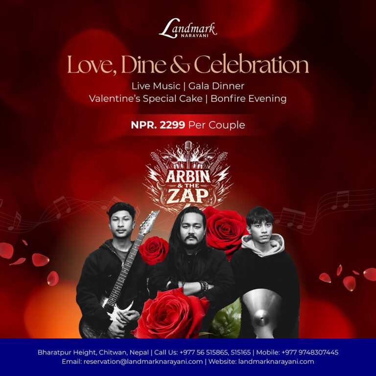 ल्याण्डमार्क नारायणीले भ्यालेन्टाइन डेलाई अझै मनमोहक र रोचक बनाउन लाइभ म्युजिकसहितको गाला डिनरसमेत उपलब्ध गराउने भएको छ । भ्यालेन्टाइन डे अर्थात् फेब्रुअरी १४ का लागि ल्याण्डमार्क नारायणीले एक जोडीलाई केवल २ हजार २९९ रुपैयाँ अर्थात् एक व्यक्तिका लागि १ हजार १५० रुपैयाँमै भ्यालेन्टाइन स्पेसल केकसहितको गाला डिनर उपलब्ध गराउने भएको हो । यो अफरमा ‘अर्बिन एण्ड दि ज्याप’को लाइभ म्युजिकको समेत आनन्द लिन सकिने छ ।