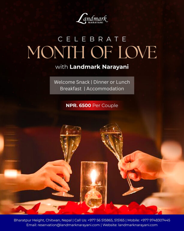 ल्याण्डमार्कले आफ्नो भरतपुर हाइट चितवनमा रहेको ल्याण्डमार्क नारायणीमा मन्थ अफ लभका रूपमा महिनाभरि कै लागि एउटै मूल्यमा अफर सार्वजनिक समेत गरेको छ । अफरमा भ्यालेन्टाइन डे सजावटसहितको डिलक्स रुम, वेलकम ड्रिंक्स, एक बोतल वाइन, क्याण्डललाइट डिनर, ल्याभिस ब्रेकफास्ट आदि समावेश गरिएको छ ।