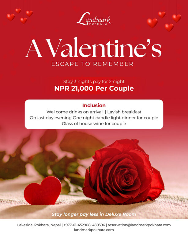 ल्याण्डमार्क होटेल्समा भ्यालेन्टाइन अफर : २ रातको शुल्कमा ३ रातको बासदेखि क्याण्डललाइट डिनरसम्म