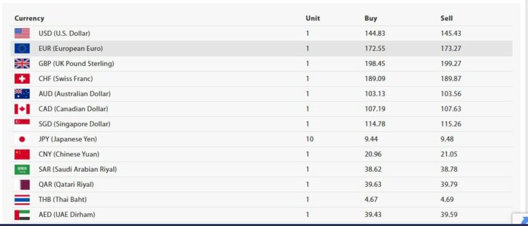 काठमाडौं । नेपाल राष्ट्र बैंकले बिहीबारका लागि विदेशी मुद्राको विनिमयदर निर्धारण गरेको छ । निर्धारित विनिमयदरअनुसार अमेरिकी डलर एकको खरिददर १४४ रुपैयाँ ८३ पैसा र बिक्रीदर १४५ रुपैयाँ ४३ पैसा तोकिएको छ ।