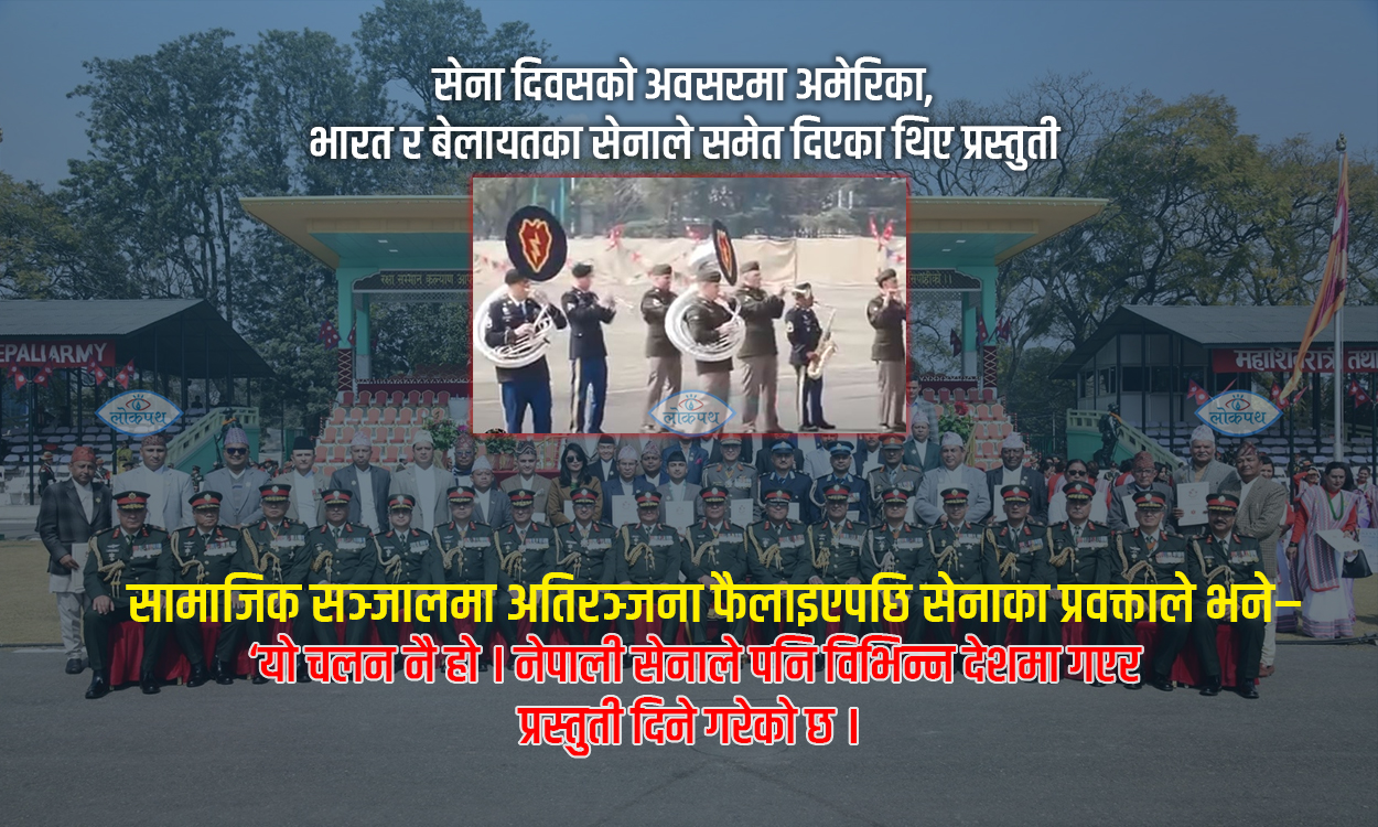 ‘यो विगत ८–१० वर्षदेखिकै चलन हो । विभिन्न देशका सेनाले नेपालको सेना दिवसका अवसरमा भाग लिने चलन रहेको छ । अमेरिकी सेनाको ब्याण्ड टोली पनि नेपालको आर्मी डे को कार्यक्रममा रेसिप्रोकल बेसिसमा शो देखाउन आउने चलन नै हो,’ प्रवक्ता बस्नेतले लोकपथसँग भने, ‘केही समयअघि मात्रै नेपाली सेनाको ब्याण्ड भारतको आर्मी डेको अवसरमा त्यहाँ पुगेर आफ्नो शो देखाएका छन् । उनीहरु (भारतको सेना) ले नेपालीमा नै एनाउन्स समेत गरेका छन् । हामीले पनि विभिन्न देशहरुलाई बोलाउँछौँ, त्यसमा जो जो आउनुहुन्छ उहाँहरुले यहाँ शो देखाउनुहुन्छ । र हाम्रो सेनाले पनि अन्य देशले बोलाएको बेला जाने चलन रहिआएको छ ।’