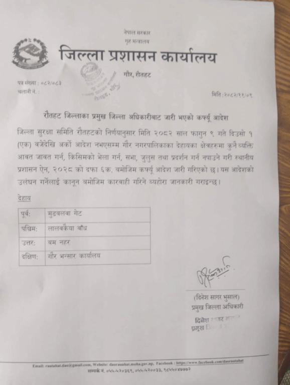 रौतहटमा दुई समुदायबिच झडप, कर्फ्यू आदेश जारी