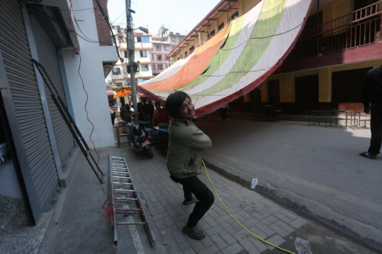शान्ति निकुञ्ज माध्यमिक विद्यालय जस्ता सार्वजनिक विद्यालयका प्राङ्गणहरूलाई मतदान केन्द्रको रूपमा परिमार्जन गरिएको छ । विद्यालयको मैदानमा मतदाताहरूलाई व्यवस्थित रूपमा लाइनमा उभ्याउनका लागि बाँसका भाटा र पहेँलो डोरीको प्रयोग गरी घेराबेरा (ब्यारिकेड) निर्माण गरिँदैछ भने बस्नका लागि बेन्चहरू मिलाएर राखिएका छन् ।