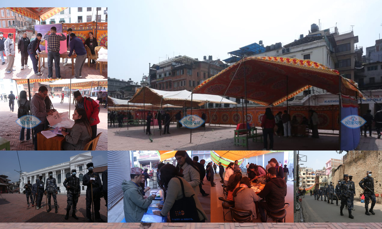 शान्ति निकुञ्ज माध्यमिक विद्यालय जस्ता सार्वजनिक विद्यालयका प्राङ्गणहरूलाई मतदान केन्द्रको रूपमा परिमार्जन गरिएको छ । विद्यालयको मैदानमा मतदाताहरूलाई व्यवस्थित रूपमा लाइनमा उभ्याउनका लागि बाँसका भाटा र पहेँलो डोरीको प्रयोग गरी घेराबेरा (ब्यारिकेड) निर्माण गरिँदैछ भने बस्नका लागि बेन्चहरू मिलाएर राखिएका छन् ।