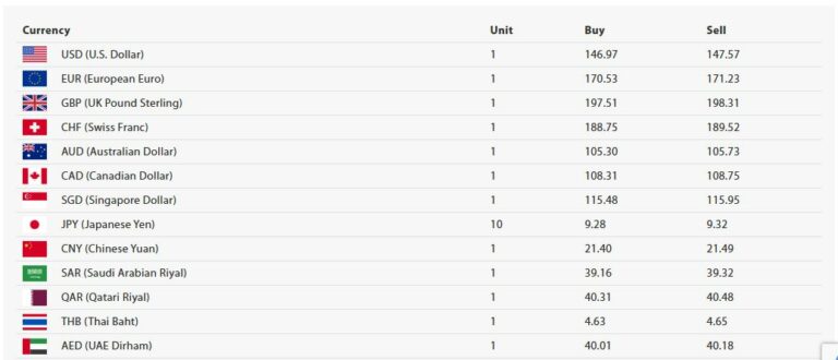जापानी येन १० को खरिददर नौ रुपैयाँ २८ पैसा र बिक्रीदर नौ रुपैयाँ ३२ पैसा, चिनियाँ युआन एकको खरिददर २१ रुपैयाँ ४० पैसा र बिक्रीदर २१ रुपैयाँ ४९ पैसा, साउदी अरेबियन रियाल एकको खरिददर ३९ रुपैयाँ १६ पैसा र बिक्रीदर ३९ रुपैयाँ ३२ पैसा, कतारी रियाल एकको खरिददर ४० रुपैयाँ ३१ पैसा र बिक्रीदर ४० रुपैयाँ ४८ पैसा कायम भएको छ ।
