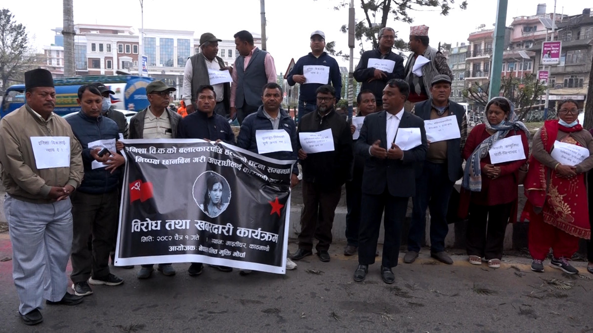 नेपाल दलित मुक्ति मोर्चाको अगुवाइमा आइतबार माइतीघर मण्डलामा विरोध प्रदर्शन गरिएको हो । विकमाथि भएको अत्यन्तै जघन्य घटनाको निष्पक्ष छानबिन गरी दोषीलाई कडा कारबाही गर्नुपर्ने माग राख्दै शुक्रबारदेखि प्रदर्शन सुरु गरिएको थियो ।