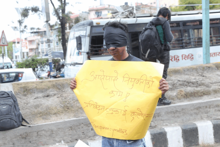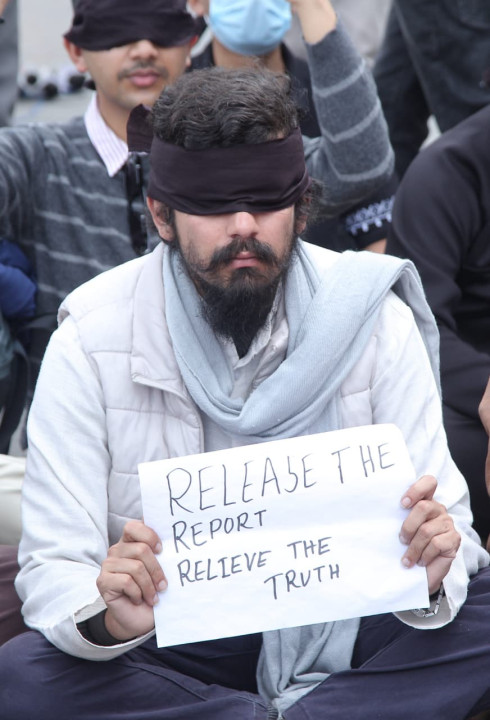उनीहरूले सरकारले घटनाको छानबिन गर्न आयोग गठन गरे पनि लामो समयसम्म प्रतिवेदन लुकाएर राखेको भन्दै आक्रोश व्यक्त गरेका छन् । उनीहरुले माइतीघर मण्डलामा आँखामा कालोपट्टी बाँधेर विरोध जनाएका छन् । भदौ २३ र २४ गते युवाहरू (जेनजी) ले विभिन्न माग राख्दै गरेको प्रदर्शनमा प्रहरीको हस्तक्षेप र झडप भएपछि सरकारले पूर्वन्यायाधीश गौरीबहादुर कार्कीको संयोजकत्वमा एक जाँचबुझ आयोग गठन गरेको थियो । आयोगले आफ्नो प्रतिवेदन सरकारलाई बुझाए पनि प्रतिवेदन सार्वजनिक नहुँदा आम नागरिक र प्रदर्शनकारी युवाहरूमा असन्तुष्टि बढेको छ ।