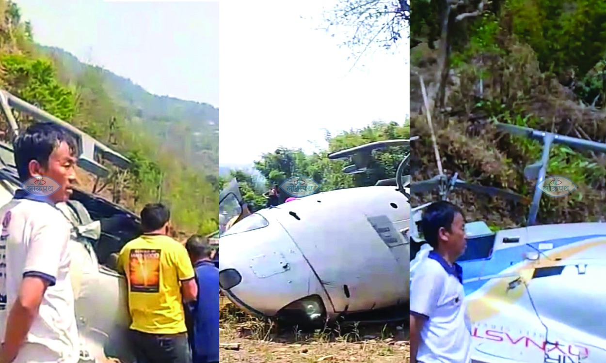 गाउँको माझमा हेलिकप्टर दुर्घटना भएको हुँदा स्थानीयहरुको सहयोगमा हेलिकप्टरमा सवारहरुको उद्धार गरिएको छ ।
