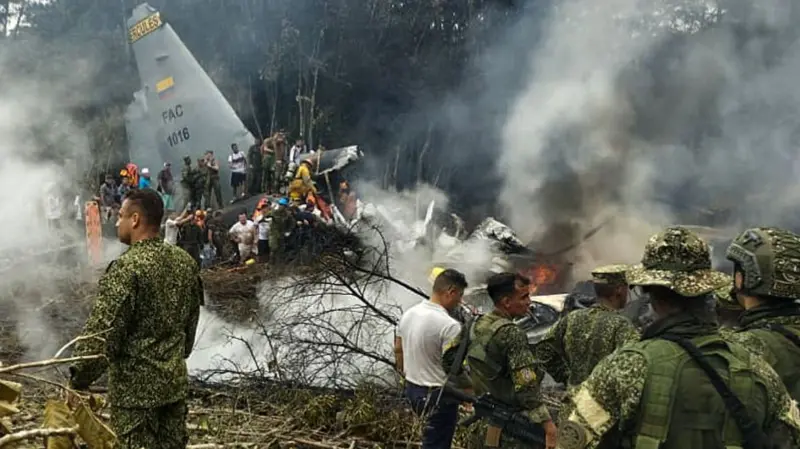 कोलम्बियामा सैन्य विमान दुर्घटना, कम्तिमा ६६ जनाको मृत्यु