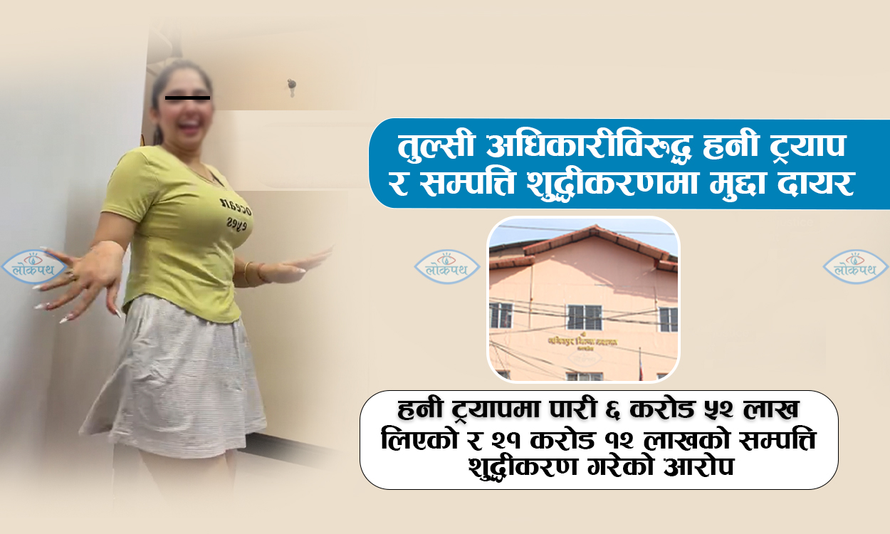 हनी ट्र्याप अर्थात् आपराधिक लाभ र ठगीको कसुरमा परिवर्तित नाम शंकर चिमोरियाले दिएको जाहेरीको आधारमा अधिकारीविरुद्ध बिहीबार आपराधिक लाभ, ठगी र सम्पत्ति शुद्धीकरण समेतमा मुद्दा दायर गरिएको हो ।