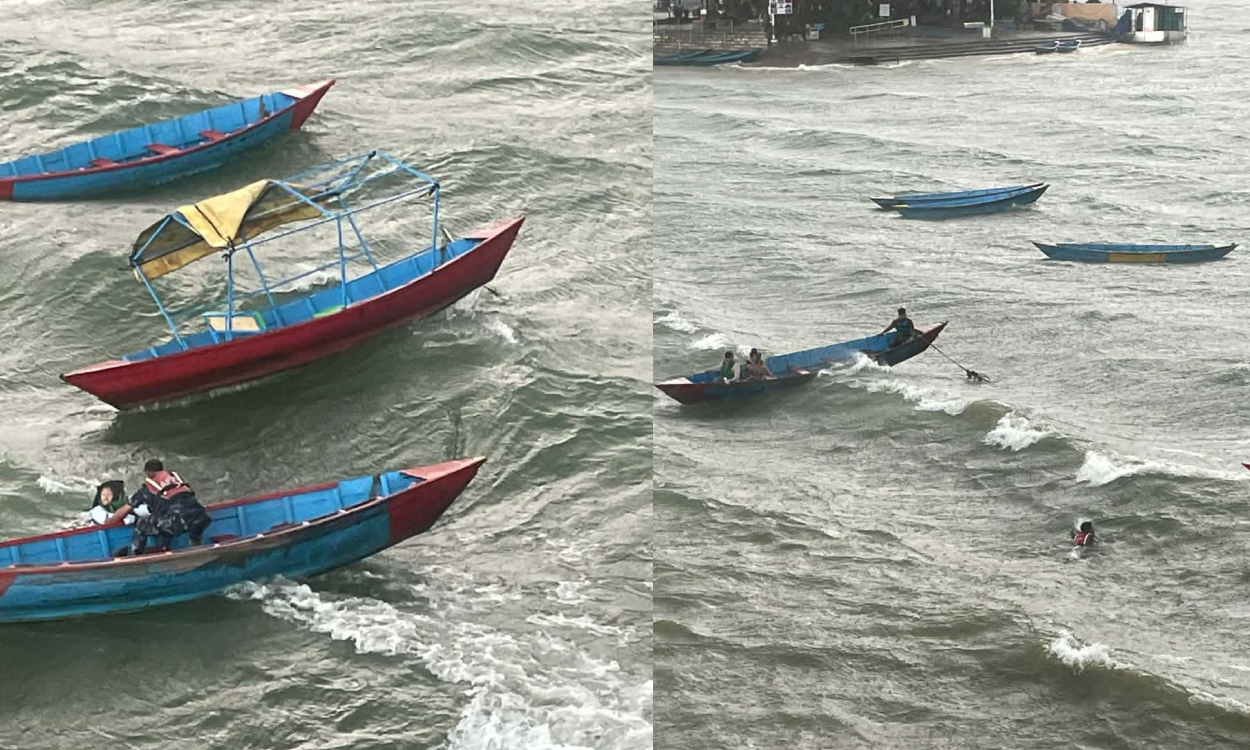 अचानक आएको हावाहुरीको कारण स्ट्यान्डिङ प्याडल बोटमा बोटिङ गरिरहेका उनीहरु सो तालको बीच भागमा फसेका थिए ।