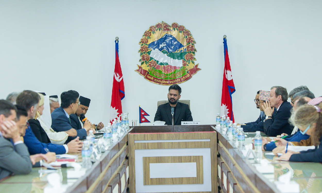 काठमाडौं । प्रधानमन्त्री बालेन्द्र शाह ‘बालेन’ ले नेपालस्थित विभिन्न देशका राजदूत तथा कूटनीतिक नियोगका प्रमुखहरूसँग आज सामूहिक भेट र संवाद गरेका छन् ।