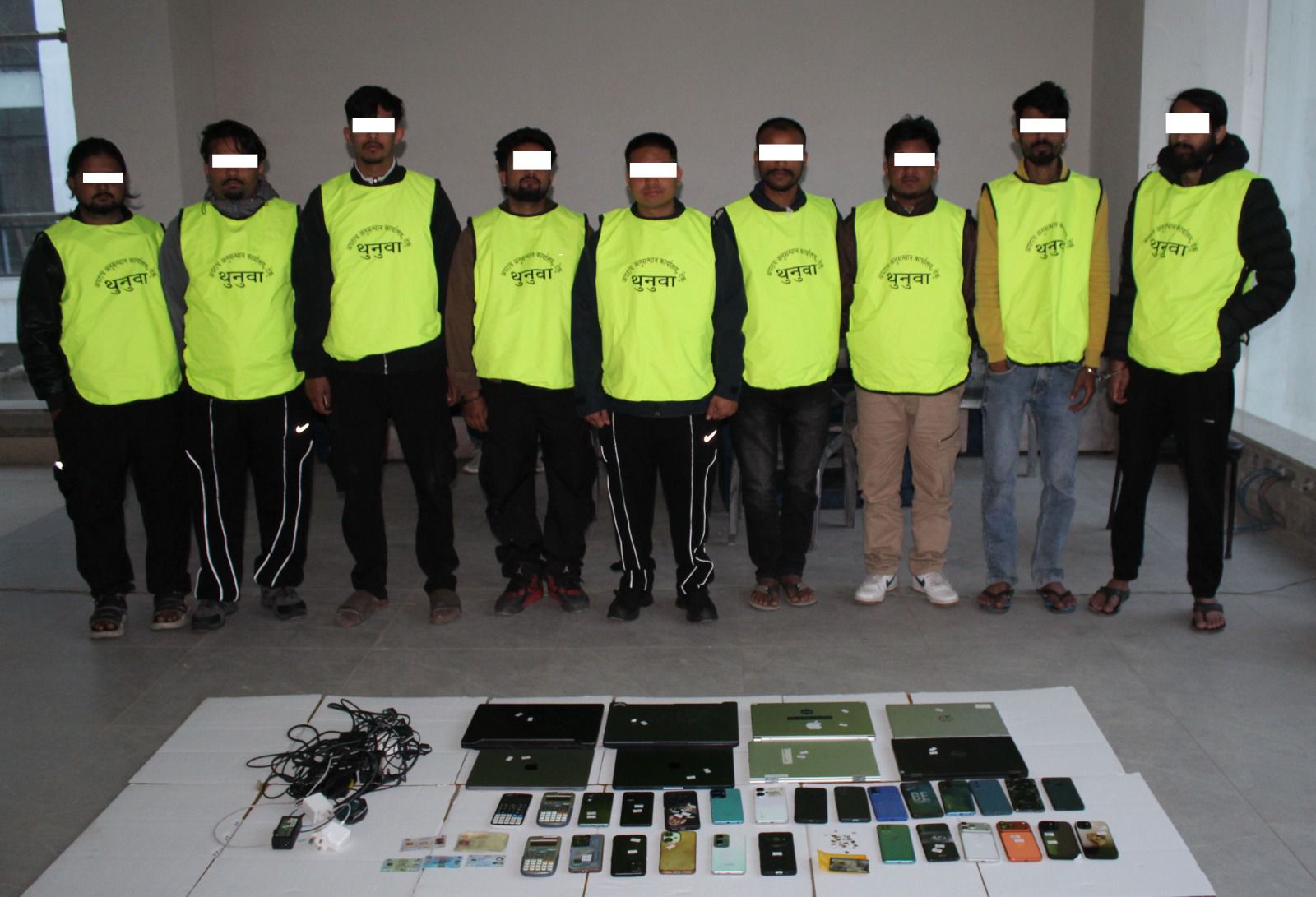 उनीहरुको साथबाट विभिन्न सामग्रीहरु समेत बरामद गरिएको छ । एसपी भट्टका अनुसार विभिन्न कम्पनीका ८ थान ल्यापटप, मोबाइल २४ थान, विभिन्न कम्पनीका भारतीय र नेपाली सिम कार्ड ३१ थान र क्याल्कुलेटर ३ थान बरामद गरिएको छ ।