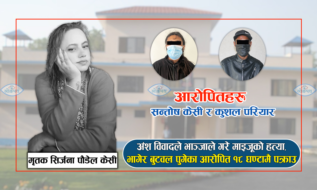 कास्कीको पोखरा–५ जिरो किमी घर भई पोखरा १८ सेदीमा बस्ने ४२ वर्षीय सिर्जना पौडेल केसीको हत्यामा उनकै भान्जाको संलग्नता रहेको खुलेको छ । मृतक महिलाका श्रीमान् कृष्ण क्षेत्रीका भान्जा सन्तोष केसीले अंश विवादका कारण माइजू सिर्जना पौडेल केसीको हत्या गरेको पाइएको छ । पक्राउ लगत्तै प्रहरीले गरेको प्रारम्भिक सोधपुछमा सन्तोषले माइजू सिर्जनाको अंश विवाद रहेको र हजुरआमा (सिर्जनाकी सासू) सँग मृतकले झगडा गरेकाले आफूले माइजूको हत्या गरेको बयान दिएका छन् ।