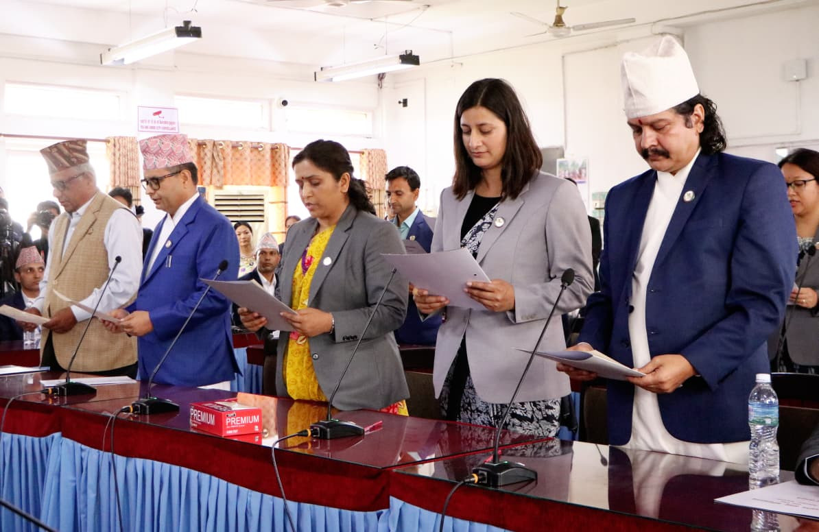 शुक्रबार अपरान्ह सभामुख डोलप्रसाद अर्याल (डीपी अर्याल) ले नवनिर्वाचित सभापतिहलाई पद तथा गोपनियताको शपथ खुवाएका हुन् ।