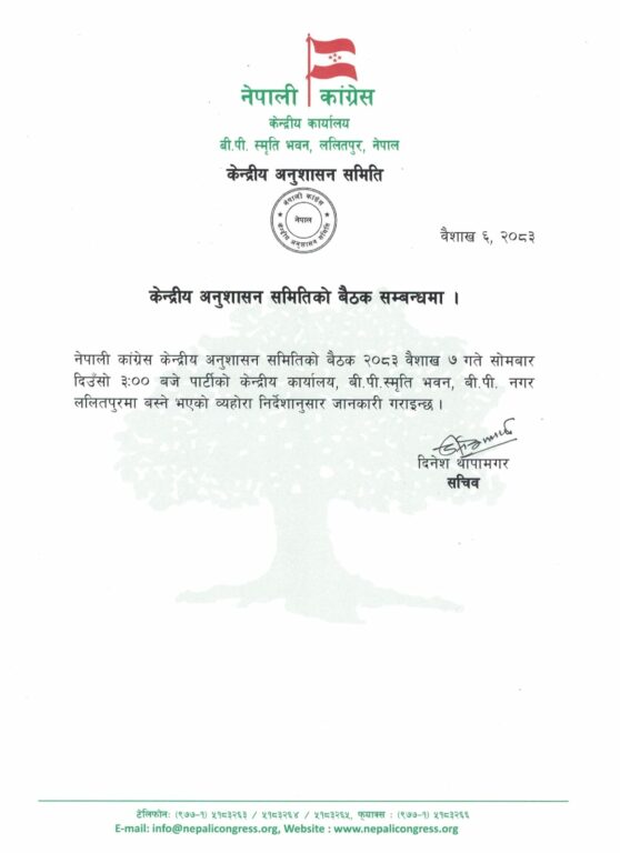 कांग्रेसले फेरि बोलायो अनुशासन समितिको बैठक