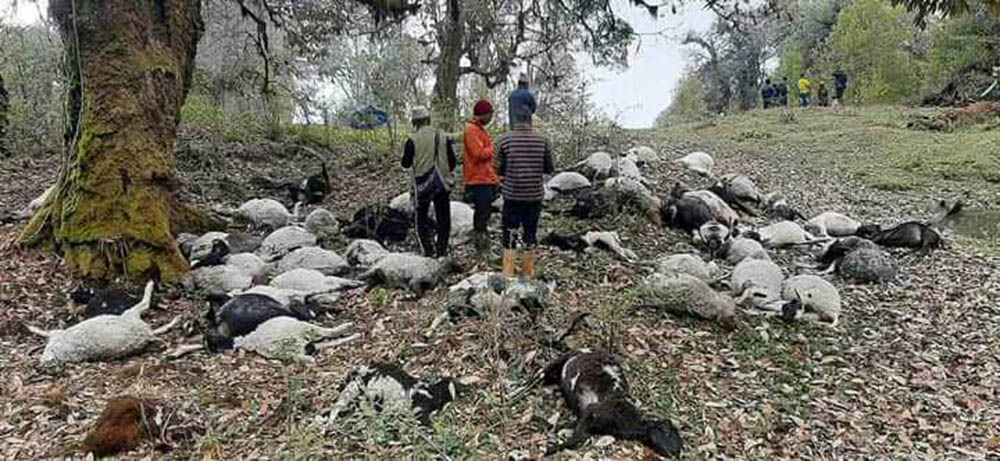 बाजुरामा हावाहुरी, पहिरो र चट्याङको कहर : १६ भेडाबाख्रा मरे, ३८ बेपत्ता