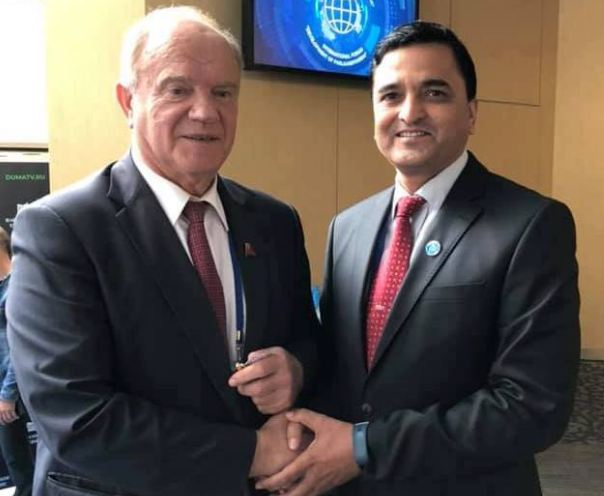 जुलाई १ देखि तीनसम्म हुने ‘संसदीय अभ्यासको विकास सम्बन्धी दोस्रो अन्तराष्ट्रिय मञ्च’ मा विश्वभरीका १ सय ३२ मुलुकका ८ सय सांसदहरु सहभागी हुने कार्यक्रमका लागि पुगेका उनले रसियन कम्युनिष्ट पार्टीका वरिष्ठ नेता गेन्नाडी एन्ड्रीयभिच ज्यूगानोभसँग भेट गरेका हुन् ।