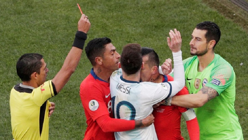तर, खेलको पहिलो हाफमै दुवै टोली १० खेलाडीमा समेटियो । खेलको ३७ औं मिनेटमा अर्जेन्टिनाका कप्तान लियोनल मेस्सी र चिलीका गारी मेडेलले रातो कार्ड पाएपछि दुवै टोली १० खेलाडीमा समेटिएको हो ।