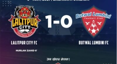 काठमाडौं। नेपाल सुपर लिग (एनएसएल) अन्तर्गत आज (बिहीवार) खेलीएको पहिलो खेलमा ललितपुर सिटी एफसीले बुटवल