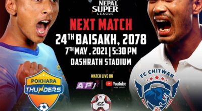 काठमाडौं। नेपाल सुपर लिग (एनएसएल) अन्तर्गत आज एक मात्र खेल हुँदै छ। दशरथ रंगशालामा पोखरा