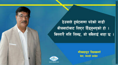 काठमाडौं । नेपाली कांग्रेसका उपसभापति विजयकुमार गच्छदारले आगामी महाधिवेशनमा सभापतिको उम्मेदवारहरुको लाइनमा नभएको बताएका छन्