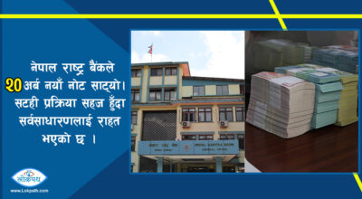 काठमाडौं । नेपाल राष्ट्र बैंकले २० अर्ब रुपैयाँबराबरका नयाँ नोट सटही गरेको छ । राष्ट्र