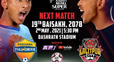 काठमाडौं। नेपाल सुपर लिग (एनएसएल) मा आज (आइतवार) एकमात्र खेल खेलिने छ। दशरथ रंगशालामा साँझ
