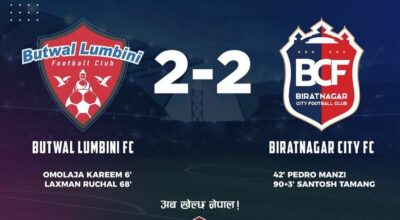 काठमाडौं। नेपाल सुपर लिग (एनएसएल) मा आज (शनिवार) भएको दोस्रो खेलमा विराटनगर सिटी एफसी र