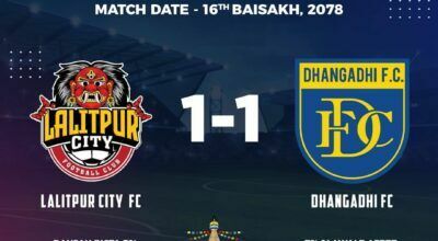 काठमाडौं। नेपाल सुपर लिग (एनएसएल) मा आज (बिहीवार) भएको एकमात्र खेलमा ललितपुर सिटी एफसी र