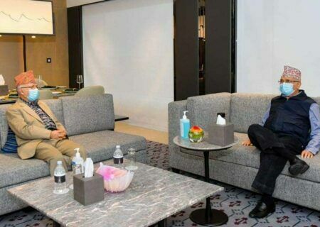 काठमाडौं । प्रधानमन्त्री एवं नेकपा एमालेका अध्यक्ष केपी शर्मा ओली र नेता माधवकुमार नेपालबीचको भेटवार्ता