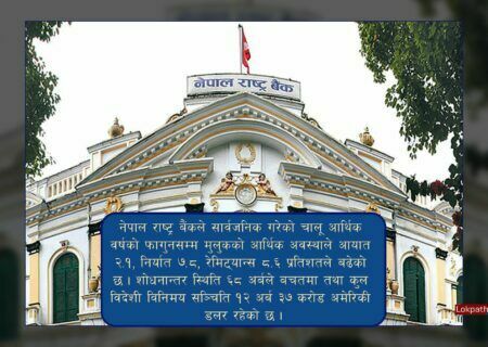 काठमाडौं । नेपाल राष्ट्र बैंकले चालू आर्थिक वर्षको आठ (फागुन) महिना सम्मको मुलुकको आर्थिक अवस्था