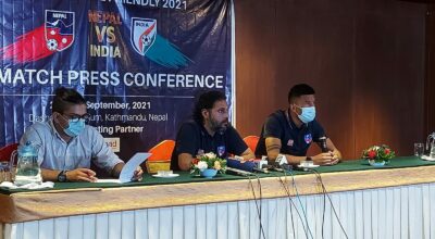 काठमाडौं। नेपाली राष्ट्रिय फुटबल टोलीले आज (बिहीवार) भारतविरुद्ध पहिलो मैत्रीपूर्ण खेल खेल्दै छ। त्रिपुरेश्वरस्थित दशरथ