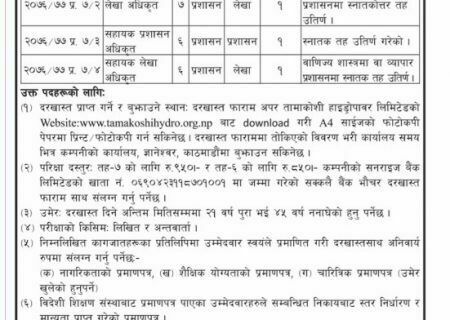 अपर तामाकोशी हाइड्रोपावरले कर्मचारी माग गरेको छ । बुधबार हाइड्रोपावरले एक सूचना निकाल्दै प्रशासन अधिकृत,
