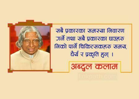 काठमाडौं । भारतका मिसाईल वैज्ञानिक तथा पूर्व राष्ट्रपति डा. एपिजे अब्दुल कलामको जन्म १९ अक्टुवर