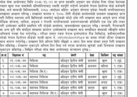 नेपाल धितोपत्र बोर्डले विभिन्न पदमा कर्मचारी माग गरेको छ । खुला तथा समावेशी प्रतियोगितात्मक प्रतिस्पर्धाबाट