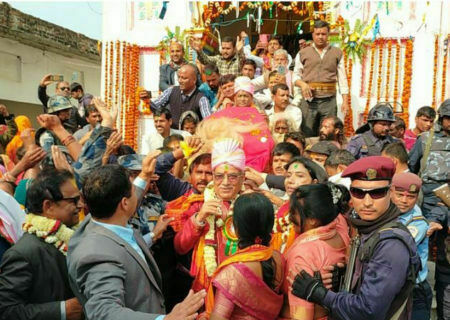 काठमाडौं । नेपाल कम्युनिष्ट पार्टी (नेकपा)का अध्यक्ष पुष्पकमल दहाल ‘प्रचण्ड’ले मिथिलाविहारी भगवान्को डोला उठाउँदै मिथिला