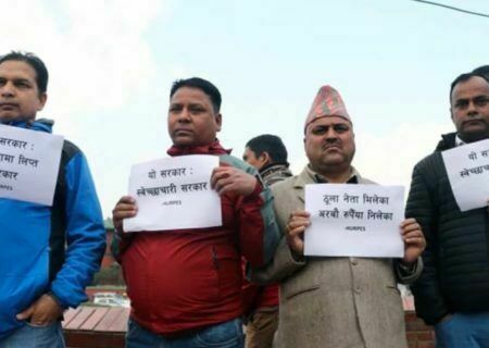 काठमाडौं । विभिन्न भ्रष्टाचार काण्डका दोषीलाई कारबाहीको माग गर्दै मानव अधिकार तथा शान्ति समाजले प्रदर्शन