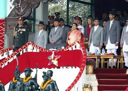 काठमाडौं । राष्ट्रपति विद्यादेवी भण्डारी महाशिवरात्रि तथा सेना दिवसका अवसरमा नेपाली सेनाद्वारा सैनिक मञ्च टुँडिखेलमा
