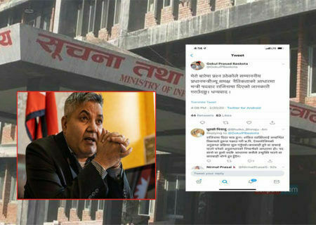 काठमाडौं – सरकारका प्रवक्ता एवम् सूचना तथा सञ्चारमन्त्री गोकुल बाँस्कोटाले अन्ततः पदबाट राजीनामा दिएका छन्