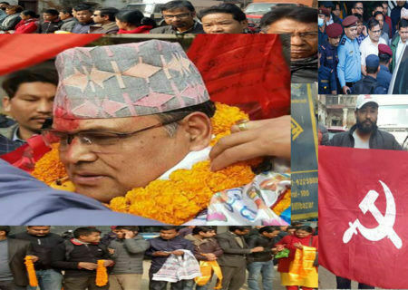 काठमाडौं । पूर्वसभामुख कृष्णबहादुर महराको स्वागतका लागि सत्तारुढ नेपाल कम्युनिष्ट पार्टी (नेकपा)का नेता कार्यकर्ता, आफन्त
