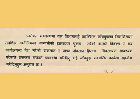 काठमाडौं – सम्पत्ति शुद्धीकरण अनुसन्धान विभागले केही उद्योगी–व्यवसायीसँग आर्थिक कारोबारको विवरण मागेको छ। यसबाट उद्योगी–व्यवसायी