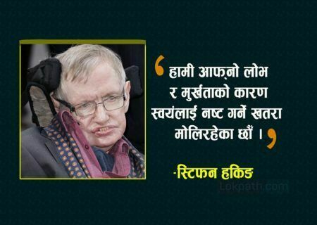 काठमाडौं । महान वैज्ञानिक स्टिफन हकिङको जन्म ८ जनवरी सन् १९४२ र मृत्यु १४ मार्च