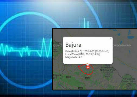 काठमाडौं । बाजुरामा मंगलबार बिहान भुकम्पको धक्का महसुस गरिएको छ । मंगलबार बिहान ७ बजेर