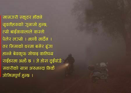 काठमाडौं – सडक सबैको साझा सम्पत्ति हो । कसैको हँकाई जाँच्न, कतिको डराउँछ भनेर आत्मविश्वास